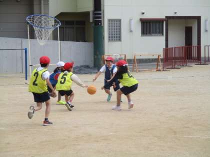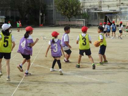 体育科「バスケットボール」の学習が終わりました。本当に、単元の最初と比べると成長を感じるところがたくさんありました。ひとつ前の「ポートボール」の学習では、最初はボールに集まってしまい団子になることが多かったですが、今回の学習ではスペースを見つけて動くことが増えました。パスをするときも相手や見方をよく見てすることができました。準備も片付けも協力して頑張りました。