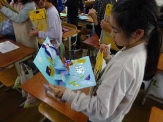 自分の作品はもちろん友だちの作品のよさを味合うことができました。完成した作品は自分の届けたい相手に渡す予定をしています。
