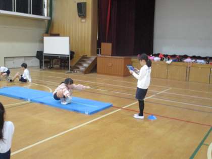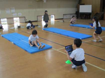 今日のマット運動の学習では、前転・後転を中心に、ちょうせんしました。ロイロノートのカメラ機能もつかって、足が上がっているのかや手が曲がっていないかなど確かめることができました。