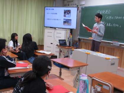 5年生は、ハナヤ学習の「世界はだれかの仕事でできている」、6年生は「未来に生きる」という単元で学んだことをもとに、「自分にとっての仕事とは」「なりたい自分とそのためにがんばること」を、作成したスライドをもとに一人ずつ発表しました。
