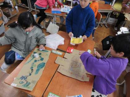 先週から作っているすごろくが完成した児童から、完成したもので遊んでみました。
