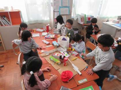 グループの友達と考えを出し合いながら、協力し合って、楽しく作っています!