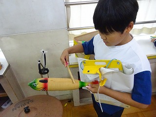 音楽「いろいろな音のひびきを楽しもう」では、音楽室で様々な楽器をにふれ、材質によってどのような音の違いがあるのかを確かめました。