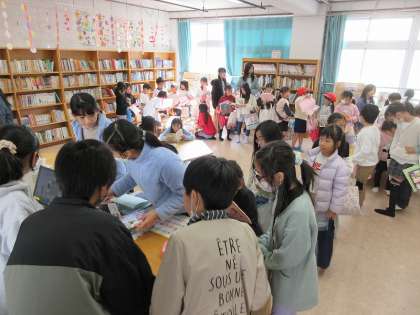 期間中は一人通常1冊のところ2冊借りられるので、早速図書館にはたくさんの児童が本を借りに来ていました。