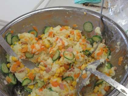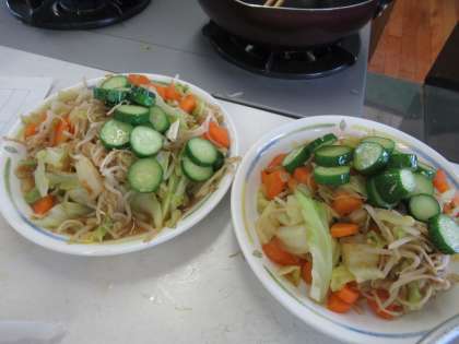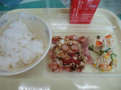 この日のお昼は、給食のご飯と牛乳と一緒に、自分たちで作ったおかずを食べました。本当においしかったです!