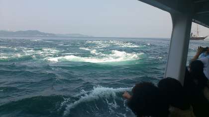 鳴門観光汽船に乗って,渦潮見学です。今日はとってもラッキーな日で,大きな渦潮をみることができました。大きな渦に子どもたちは大興奮。なかなかこんなに大きな渦潮は見ることができません。運の良い子どもたちです。