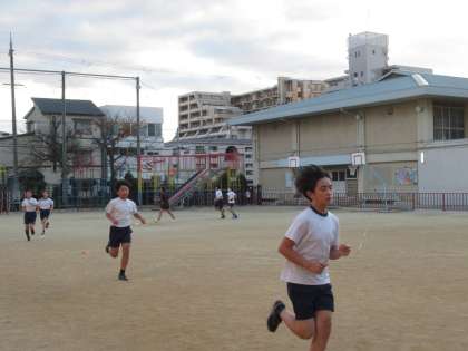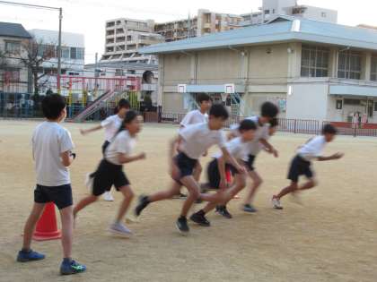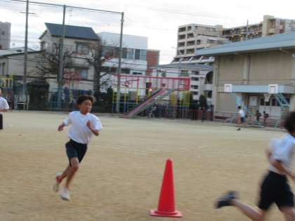 12月に入り、空気が冷たく感じられるようになってきました。水曜日の放課後に、「京(みやこ)キッズRUN」の校内記録会の1回目を実施しました。アップして体を温めた後、十分ストレッチをして体をほぐしてから取り組みました。記録に向けて、精一杯走りぬく姿が、とてもすてきでした。