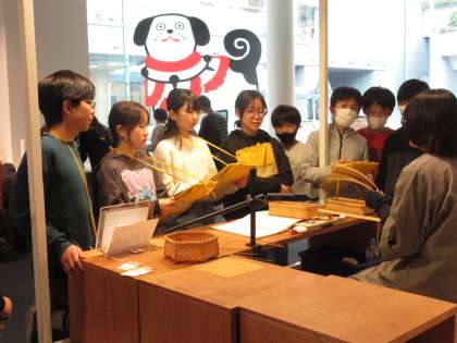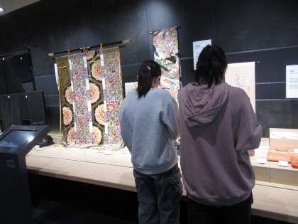 午後からは、ロームシアター京都の向かい側にある「みやこめっせ地階 伝統産業ミュージアム」へ行きました。およそ45分間という短い時間でしたが、京都の伝統工芸品の展示を見たり、実際に触れたりして楽しみました。今日の活動を、ハナヤ学習や国語科の学習につなげていきたいと思っております。