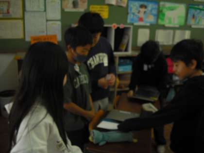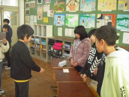外国語の学習で、What would you like? I’d like…. How much is it? It’s…. …yen.を使って、日本各地の料理を楽しむために、食事の注文や値段を聞き取ったり、丁寧に注文したり値段を尋ねたりおすすめのメニューについて伝え合ったりする学習に取り組みました。班ごとにどの都道府県の料理を扱うレストランにするのかを決めて、店員さん役とお客さん役に分かれてレストランをしました。