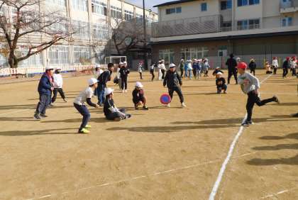 23日(月)に、3年生学年会をしました。運動場で、ドッジビーと増え鬼をしました。クラスの垣根を越えて、楽しむ様子が見られました。
