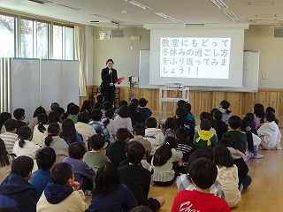 あけましておめでとうございます。今週より3学期の学校生活がスタートしています。4年生は学年集会をして、4年生の締めくくりに向けてどのようなことを大切にしていくのか、担任それぞれから話をして学年としての目標を確認しました。