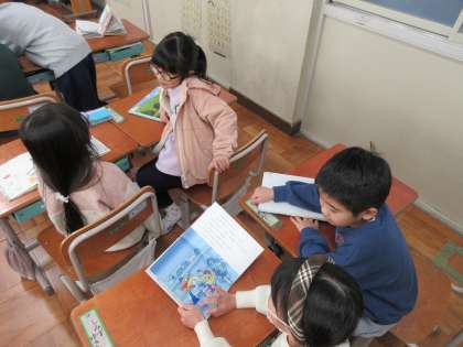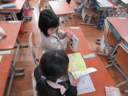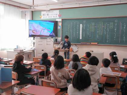 冬休みや休み時間に読んだ本の中からおすすめの1冊を決めて、友達に紹介する学習をしました。