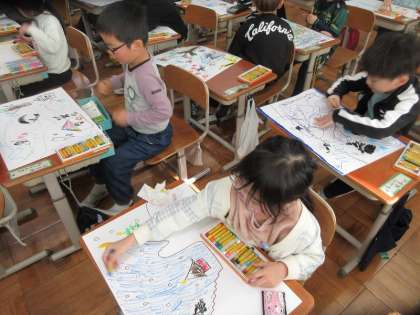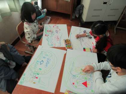 画用紙いっぱいにペンで思い思いの線を描いて…