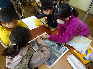 社会では、宇治市の学習を始めました。まず写真を見て、宇治市の様子に気づいたことを出し合いました。宇治市には特産品や有名な観光地など、京都市とは違う良さがあります。問いを大切に、気になることや疑問に思うことについて学習を通して解決していってほしいと考えています。