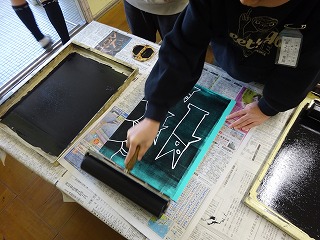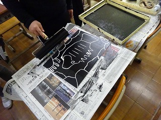 4年図画工作科「ほってすって見つけて」彫った形を刷って