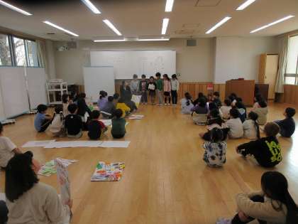 2年生が生活科の学習で取り組んできたことを1年生に向けて発表してくれました。