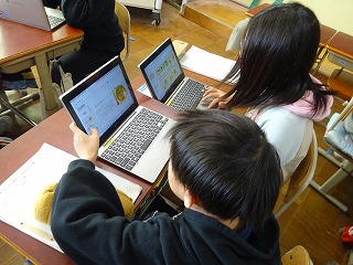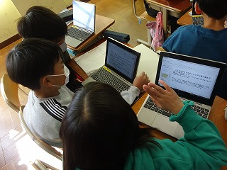 4年ハナヤ学習「七三から世界へ!広がれエコの輪」グループ別でまとめを進めて