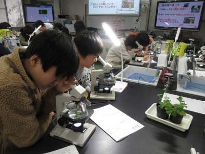12日(水)に、伏見区の青少年科学センターで、理科実験講座が開催されました。生物・化学・物理のテーマの実験を、クラスごとに受講しました。