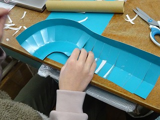 スタートからゴールまでどのようにコースをつなぐのか、特にコースを曲げる時にははさみで切って、少しずつ重ねて固定するなどの工夫が必要です。
