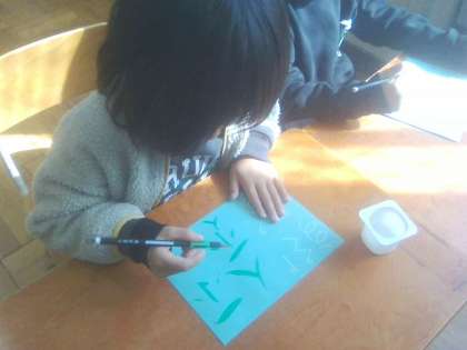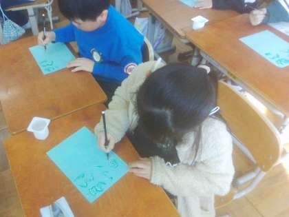 水書用の筆を使って、「とめ」「はね」「はらい」に気を付けて丁寧に字を書く学習をしました。