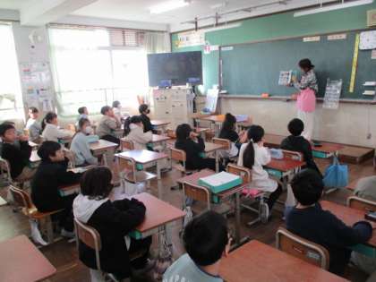 今日は、読み聞かせタイムでした。読み聞かせボランティアの方に読んでいただくのは今日が最後でしたが、1年間いろいろな本を読んでいただき様々な本に親しむことができました。今後も、様々な本を読んで、読書に親しんでほしいと思います。