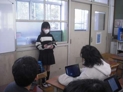 国語科の学習で、学ぶことが自分たちで決められる「子ども未来科」という教科があったとしたら、どのようなことを学びたいか。よりよい未来のためにどんなことを学ぶとよいかを考え、スピーチを行いました。防災について学ぶべきだ、食品ロスについて学ぶべきだなどと、自分が学ぶべきであると考えることに説得力をもたせるために、適切な資料を探したり、友だちにアンケートを取ったりしました。事実を意見を区別して伝えるために、工夫してスピーチを行っていました。