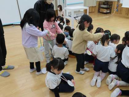 保育園のお友達は最初は緊張している様子でしたが、1年生と遊んだり教わったりして一緒に過ごす中で、とても楽しんでくれたようでした。