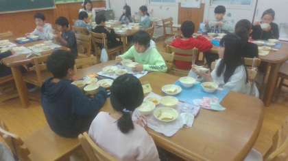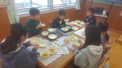新型コロナウイルス感染拡大防止のため、入学してからずっと使うことのできなかったランチルーム。今年度からようやくランチルームでの給食が復活しました。初めてのランチルームに心を躍らせ、友だちと話して楽しみながら給食を味わって食べることができました。また、食べることの大切さについても中川先生に教えていただいたので、明日からの給食もバランスよく味わって食べたいという思いをもっていました。