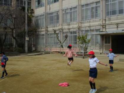 今週は、3年生で最後の体育の学習でした。短なわでいろいろな技に挑戦したり、数に挑戦したりしてきました。今回は、長なわにも取り組みました。八の字で、くぐりぬけや1回跳び、全員跳びなど色々な跳び方に挑戦しました。難しいものもありましたが、協力して頑張っていました。