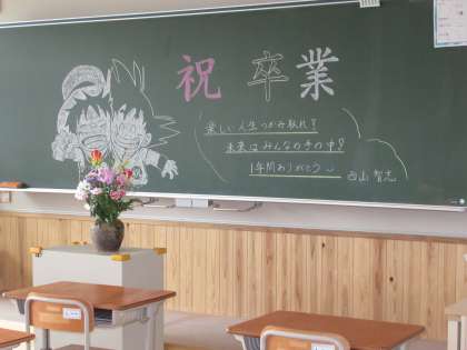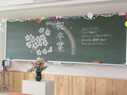 卒業式の門出の言葉の最後に歌った「道」の歌詞に「前を向いて 顔をあげて くじけないで歩いてゆく 希望という 明るい未来へ続く道を」というフレーズがあります。