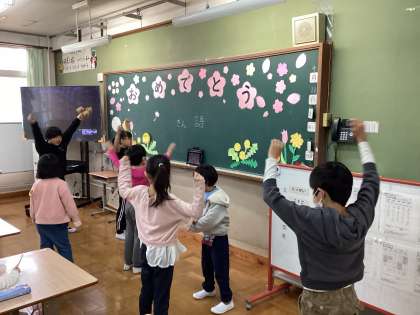 あさのたいそうも みんなで できました。