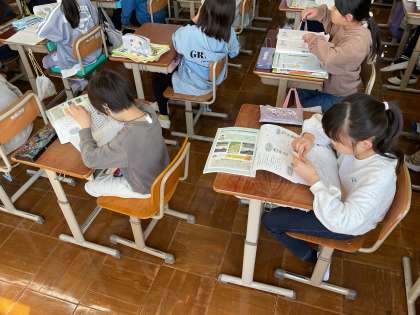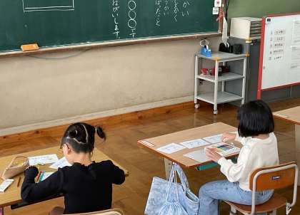 4ねんせいは こうりゅうがっきゅうで とどうふけんのシールを ちずにはりました。