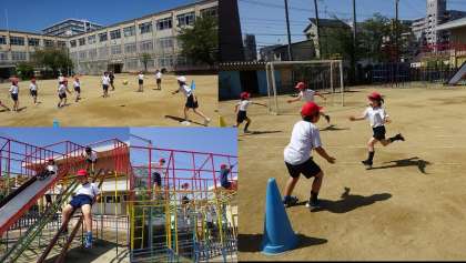 体育では、天気もよく遊具の使い方を確かめたり、運動場で走ったり投げたり運動をして元気いっぱい活動をしました。給食ももちろん残さず完食でした。