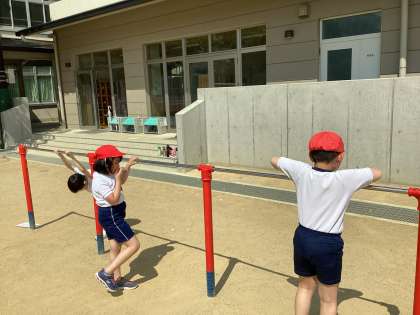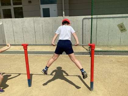 ちゅうがくねんと こうがくねんは 「さかあがり」の れんしゅうをしました。