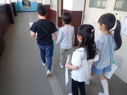 去年は連れてもらう側だった子どもたちは、今度は2年生として1年生の手をとりながら優しく案内している姿を見て、たくましく頼もしく成長しているなと感じました。