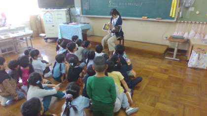 朝読書の時間に本の読み聞かせをしていただきました。子どもたちが、前のめりで一生懸命に聞く姿が見られました。これをきっかけに、もっと本を好きになってほしいなと思います。