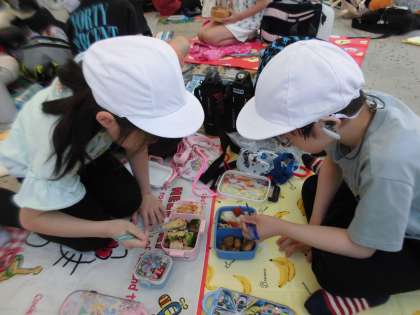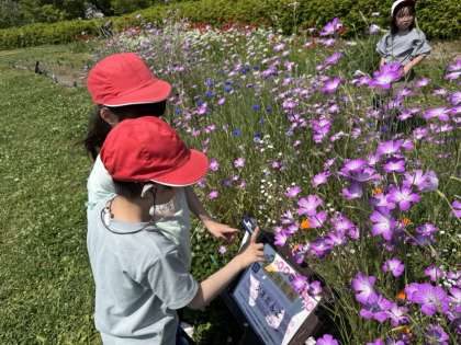 うめこうじこうえんで おべんとうをたべ はなをかんさつしました。
