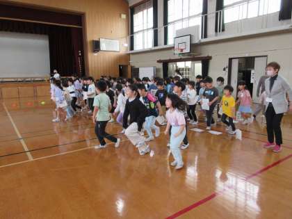 16日(金)の「1年生を迎える会」に向けて、学年の発表の練習を進めています。