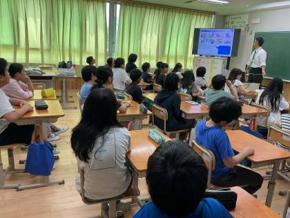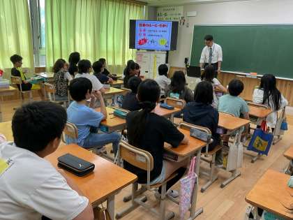 やっていいこと、悪いことを理解し、いつも正しい行動ができる人になるためにと、少年課のスクールサポーターの方に来ていただき、お話を聞かせていただきました。心にブレーキをかけるためにはどうすればいいのか、どのようなことが犯罪になるのかなどを教えていただきました。