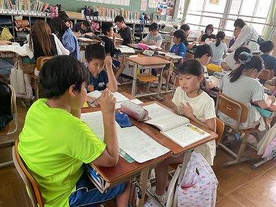 国語科「言葉の意味がわかること」の学習では、文章の要旨をとらえるために、各段落にはどのようなことが書かれているのかをグループで話し合いました。最初と最後に大切なことが書かれていることが多いということに気付くことができました。