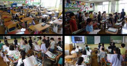 音楽「歌声のひびきを感じ取ろう」の学習では、歌声とリコーダー、鍵盤ハーモニカの重なり合う響きのよさを感じ取れるように役割を分けて学習を進めています。それぞれ役割を果たしながら、旋律を重ねて演奏することができました。