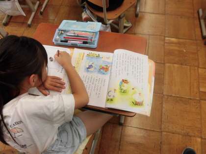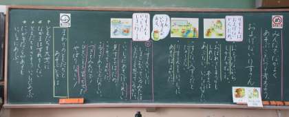 2年では、「およげないりすさん」という教材を使って道徳の学習を公開しました。泳ぐことができないりすさんは向こうの島に行くことができないと言っていた仲間たちでしたが、りすさんが一緒じゃないと寂しいと気づきます。