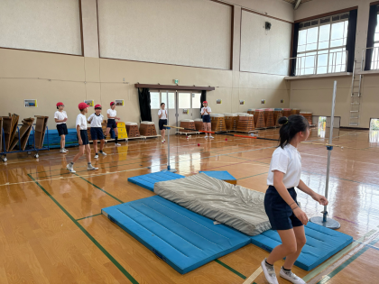 6年生では体育科で走り高跳びの学習を進めています。最初は「苦手、、」「怖い、」など自信がない様子でしたが、練習を重ねるごとに「楽しい!」「もっと跳びたい!」と意欲的に学習に取り組むようになってきました。
