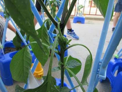 ピーマンも、小さな花が咲き、少しずつ実に変わっていっています。