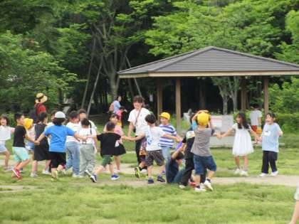 お弁当を食べた後は、広い芝生広場で遊んで帰りました。