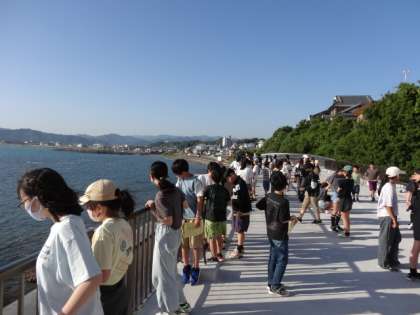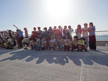 今日はお天気も良かったので、ベランダで記念撮影をした後、海岸散策に出かけました。