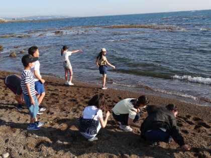貝殻やきれいなシーグラスを拾ったり、海面に向けて水切りにしたりとみんなそれぞれ楽しそうにしていました。