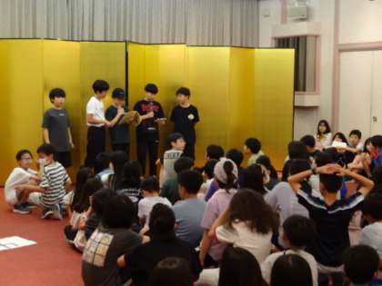 みんなで大いに盛り上がったレクリエーションの時間でした!こうして夜の時間にみんなで楽しく過ごせるのも宿泊学習ならではです。準備をがんばってくれたレク係の皆さんお疲れ様でした。