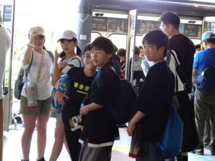 グループごとにコースを考えながらアドベンチャーワールドを見学中です。