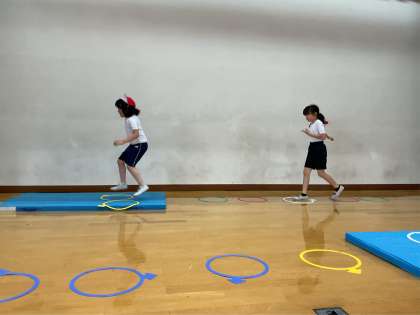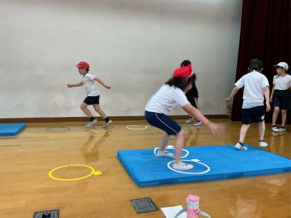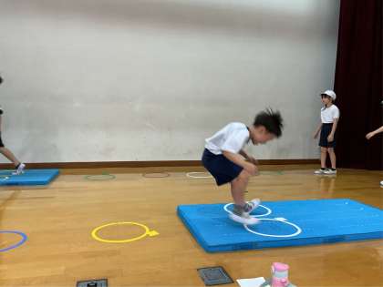 はばとびの れんしゅうとして ケンパーとびあそびをしました。